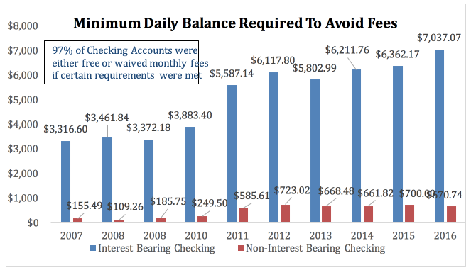 Yikes! Never mind that the balance requirement has more than doubled in the past decade, the more important point is: Who keeps that kind of money in their checking account?